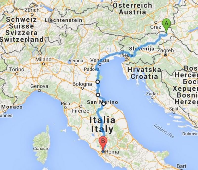 14.00: pribl. enourni postanek Tavullia (po 130 km)